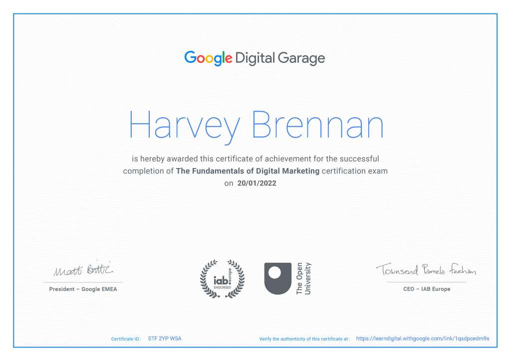 Google Digital Garage – The Fundamentals of Digital Marketing.